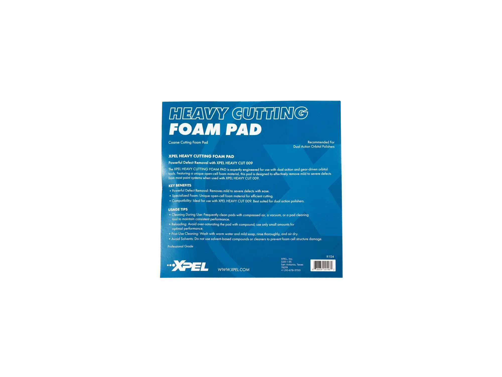 De XPEL HEAVY CUTTING FOAM PAD beschikt over een uniek open-cellig foammateriaal, waardoor hij moeiteloos zowel lichte als diepe defecten verwijdert uit de meeste laksystemen. Ontworpen voor gebruik met zowel dual action als gear-driven orbital tools, perfect te combineren met XPEL HEAVY CUT 009 voor optimale resultaat.