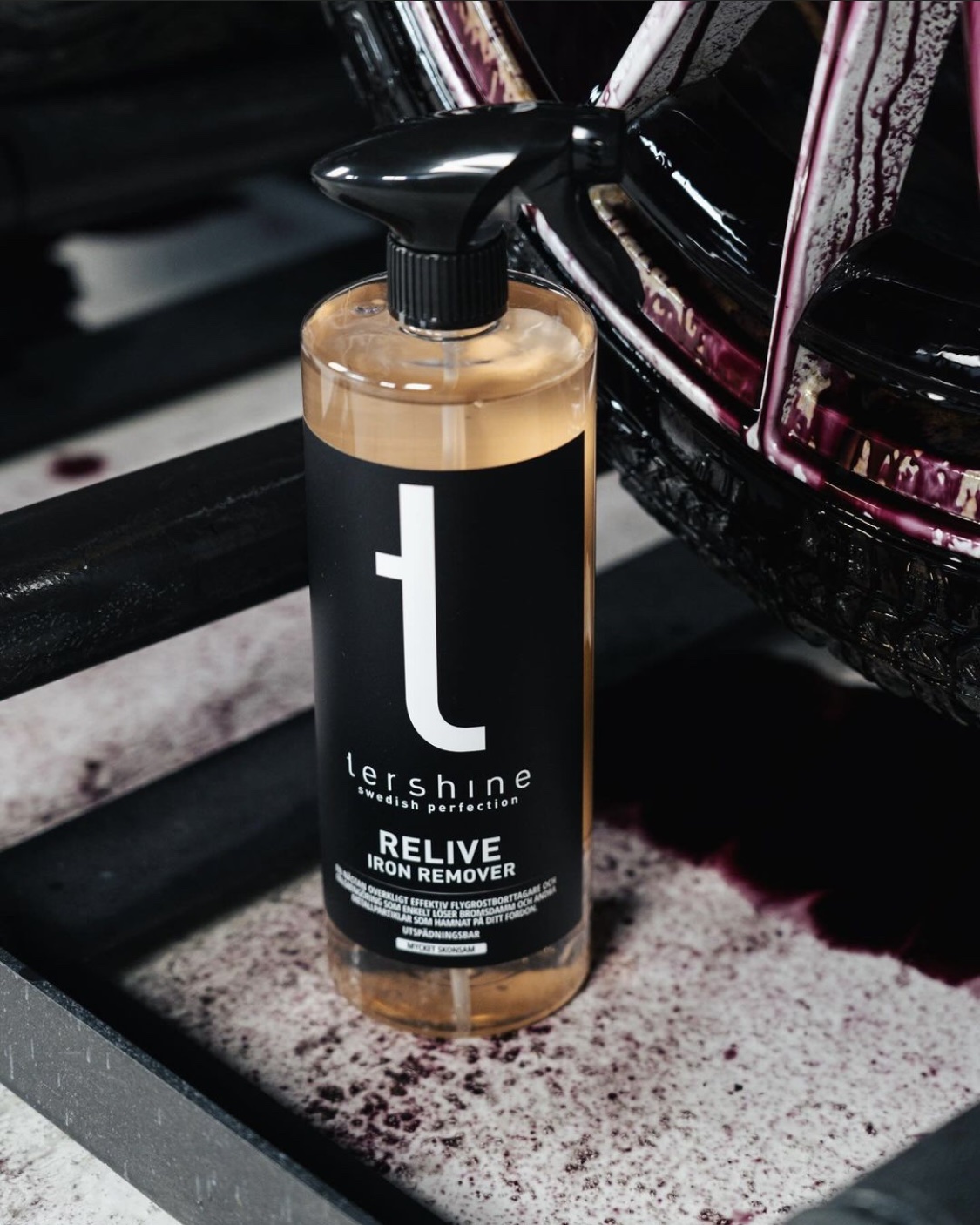 Relive is an extremely effective iron remover and wheel cleaner designed to break down iron deposits, brake dust and metal particles quickly and safely.