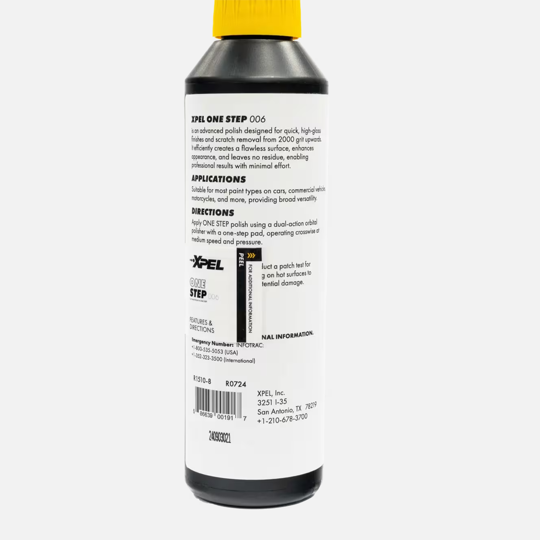 XPEL One Step 006 is een snelle alles-in-één oplossing voor een hoogglanzend resultaat. Het verwijdert schuurkrassen tot korrelgrootte 2000 en combineert snijden en polijsten in één stap. Het is gemakkelijk aan te brengen en te verwijderen, en is ideaal voor zowel professionals als doe-het-zelvers die een efficiënte, gepolijste afwerking willen op blanke lak, éénlaagslak of lakverf.